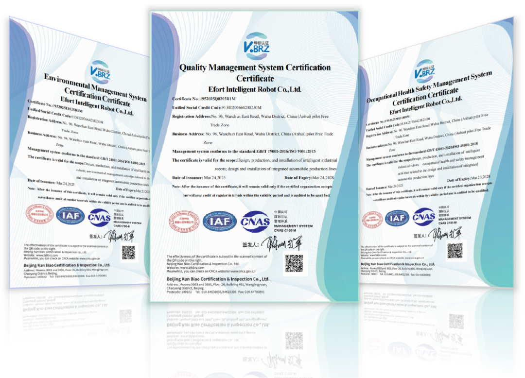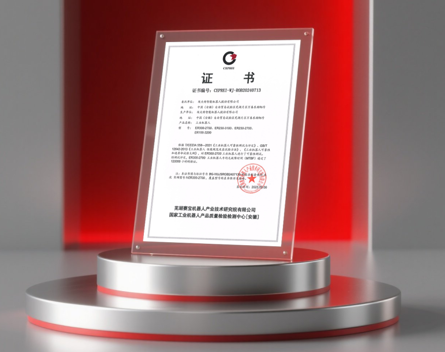 近日,埃夫特ER300系列大负载机器人凭借卓越的性能表现,成功通过MTBF(平均无故障工作时间)120000小时认证,标志着埃夫特机器人在稳定性、可靠性和耐用性方面达到了行业顶尖水平。
