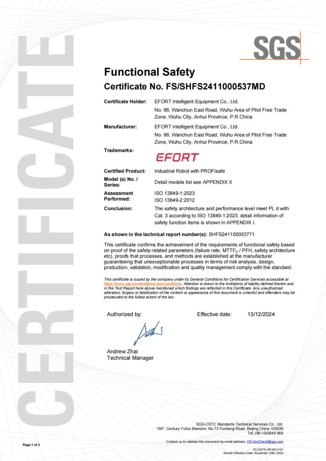 公司凭借卓越的技术实力和严格的质量管理体系,已成功获得CE(欧盟安全认证)、CR(中国机器人认证)、NRTL(北美安全认证)等全球主流市场准入资质,并通过功能安全、洁净级、防爆等多项行业专项认证。其中,公司GR系列喷涂机器人是国内首家同时获得中国防爆合格证和欧盟ATEX防爆双重认证的机器人产品,这不仅彰显了公司在防爆安全技术领域的领先地位,更为国产机器人进入汽车涂装等高端应用领域提供了可靠保障。这些权威认证的获得,充分验证了公司产品在安全性、可靠性和环境适应性等方面的卓越表现,为开拓全球市场奠定了坚实基础。