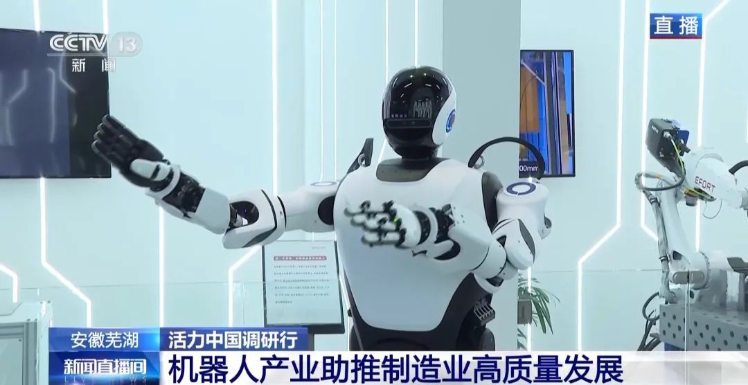 在此背景下,央视记者王宁专程来到埃夫特智能机器人股份有限公司,深入公司展厅,实地感受智能装备如何赋能产业升级,并进行了现场直播报道。