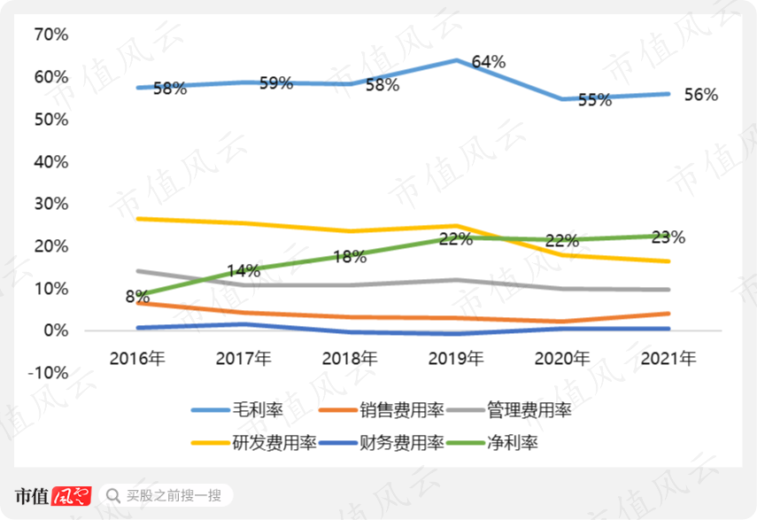 近几年,博瑞医药的盈利能力一直保持的不错,毛利率维持在55%左右,比较稳定,随着规模效应的显现,净利率更是逐年走高。