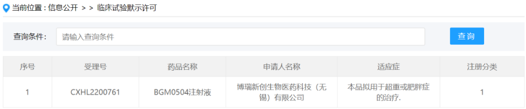 近日(2022年12月26日),据CDE官网显示,博瑞医药的BGM0504注射液获批临床,用于超重或肥胖症的治疗。
