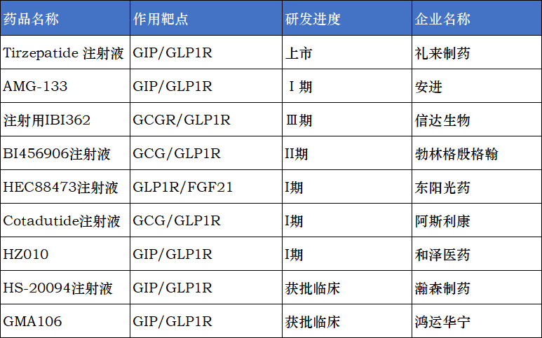 随着近年来GLP-1R、GIPR、GCGR等靶点的双重激动剂日益体现突出的临床优势,多靶点GLP-1药物成为一个新的重点开发方向,也成为主导者们争夺市场的新王牌。