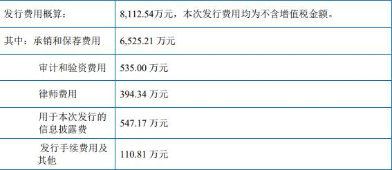 公司发行费用8,112.54万元,其中民生证券获得承销和保荐费用6,525.21万元。