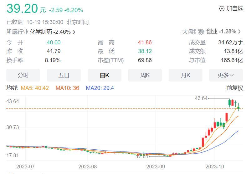 至于会议内容是咋流传到市场上的,咱也不得而知。可以知道的是,10月13日博瑞医药的股价就来个一飞冲天,开盘仅8分钟便强势涨停,涨幅20%,市值一日暴增26亿元。根据公开资料,袁建栋持有公司26.87%的股份,照此计算,他的个人财富增长将近7亿元。
