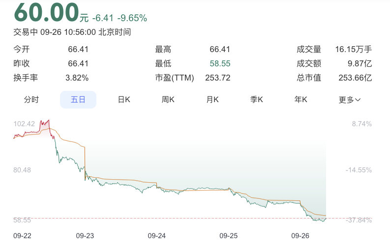药融圈监测显示:截止26日今天上午收盘前,大跌近10%,市值仅仅剩下253亿元。