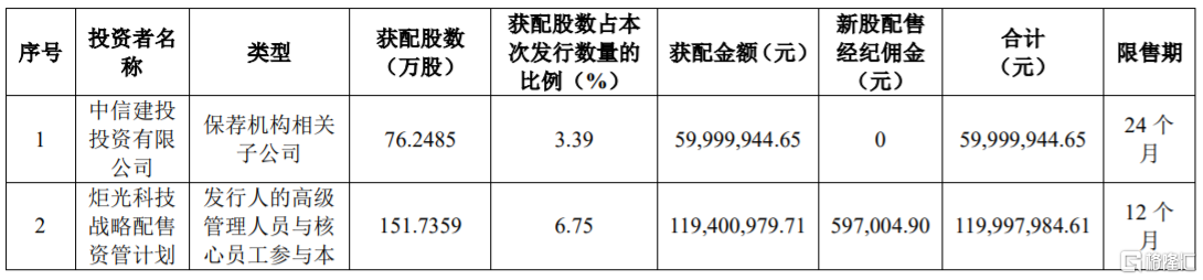 炬光科技(688167.SH)公布首次公开发行股票并在科创板上市发行结果公告,网上、网下投资者放弃认购股数全部由保荐机构(主承销商)包销,保荐机构(主承销商)包销股份的数量为11.817万股,包销金额为929.895万元,包销股份数量占扣除最终战略配售部分后本次发行数量的比例为0.58%,包销股份数量占本次发行总规模的比例为0.53%。