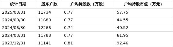 从4月26日公开信息显示,炬光科技截至2025年3月31日公司股东户数为1.17万户,较上期(2024年9月30日)减少413户,降幅为3.40%,变化不大。