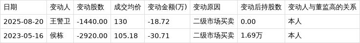 上交所公开信息显示,8月20日,炬光科技核心技术人员王警卫在二级市场买卖公司股票,减持股数0.14万股,成交均价130.00元,变动金额18.72万元,变动后持股数为0.00万股。