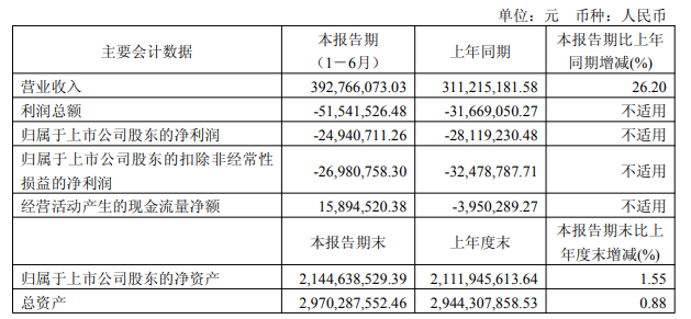 炬光科技(688167.SH)近期发布2025年半年度报告。2025年上半年,公司实现营业收入3.93亿元,同比增长26.20%;归属于上市公司股东的净利润-2494.07万元,去年同期为-2811.92万元;归属于上市公司股东的扣除非经常性损益的净利润-2698.08万元,去年同期为-3247.88万元;经营活动产生的现金流量净额为1589.45万元。