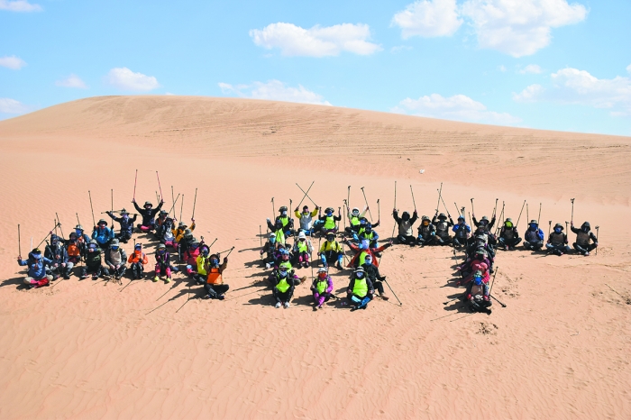 | 团建中的安博通,在库布齐沙漠摆出公司名“ABT” | |