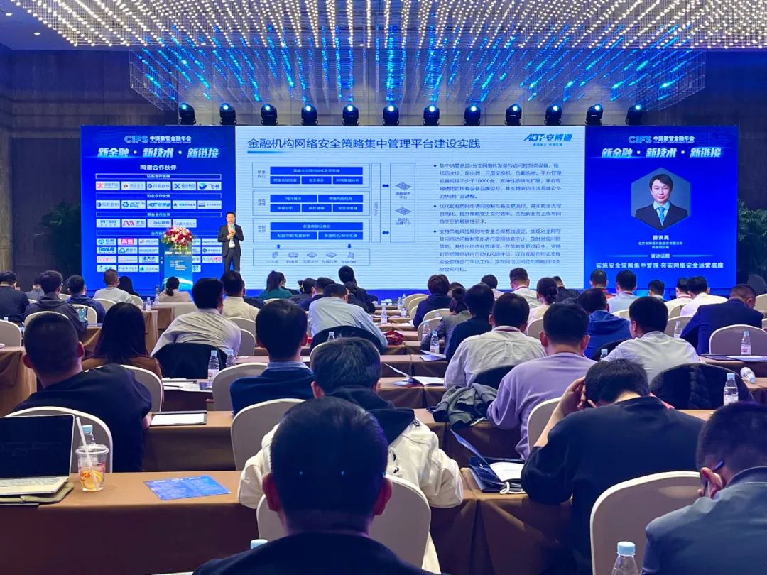 安博通作为金融科技创新应用及安全厂商代表,受邀亮相本次峰会现场。安博通高级副总裁薛洪亮作主题为《实施安全策略集中管理夯实网络安全运营底座》的演讲。