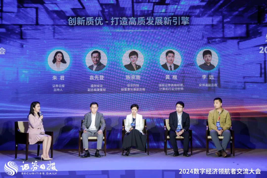 2024年9月27日,由证券日报社主办的2024数字经济领航者交流大会在北京盛大开幕,大会以“筑创新生态·助数实融合”为主题,聚焦数字经济与实体经济的深度融合。安博通受邀参加本次大会,并在圆桌论坛环节,与领域内的企业、专家和学者共同探讨创新发展与数实融合方面的实践及展望。