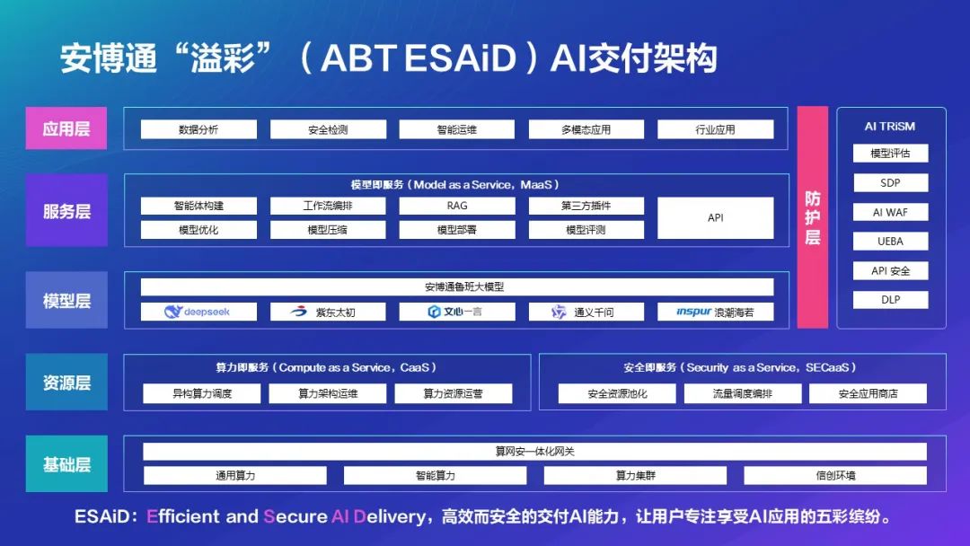 安博通“溢彩”AI交付架构,致力为用户带来更高效、安全、便捷的AI应用体验,助力千行百业在AI时代实现安全、智能的跨越式发展。
