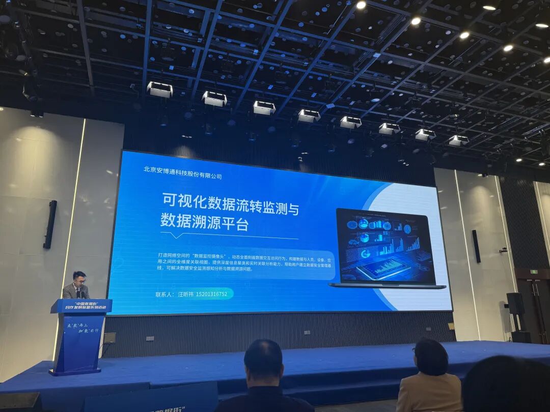 大会重点环节之一是对近期数据领域创新成果进行权威发布与展示。经过严格遴选, 安博通 申报的“可视化数据流转监测与数据溯源项目”凭借其技术先进性与实践价值,成功入选大会创新成果名录。该项目核心依托 安博通 自主研发的“元溯”数据资产监测与溯源分析平台。
