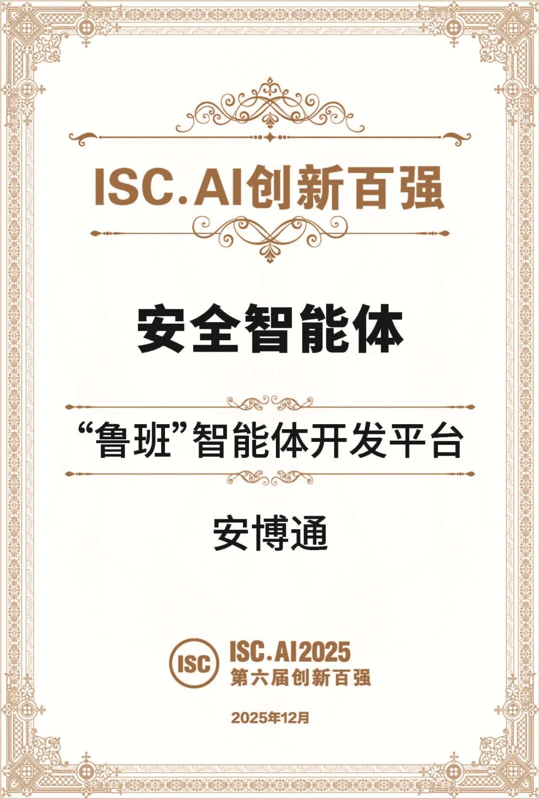 今日,由ISC平台、大模型产业联盟、 赛迪顾问 、数说安全等十余家行业机构及百余家投资机构联合举办的“ISC·AI 2025第六届创新百强”评选结果正式揭晓。 安博通 “鲁班”智能体开发平台,成功入选“ISC·AI创新百强”安全智能体领域。