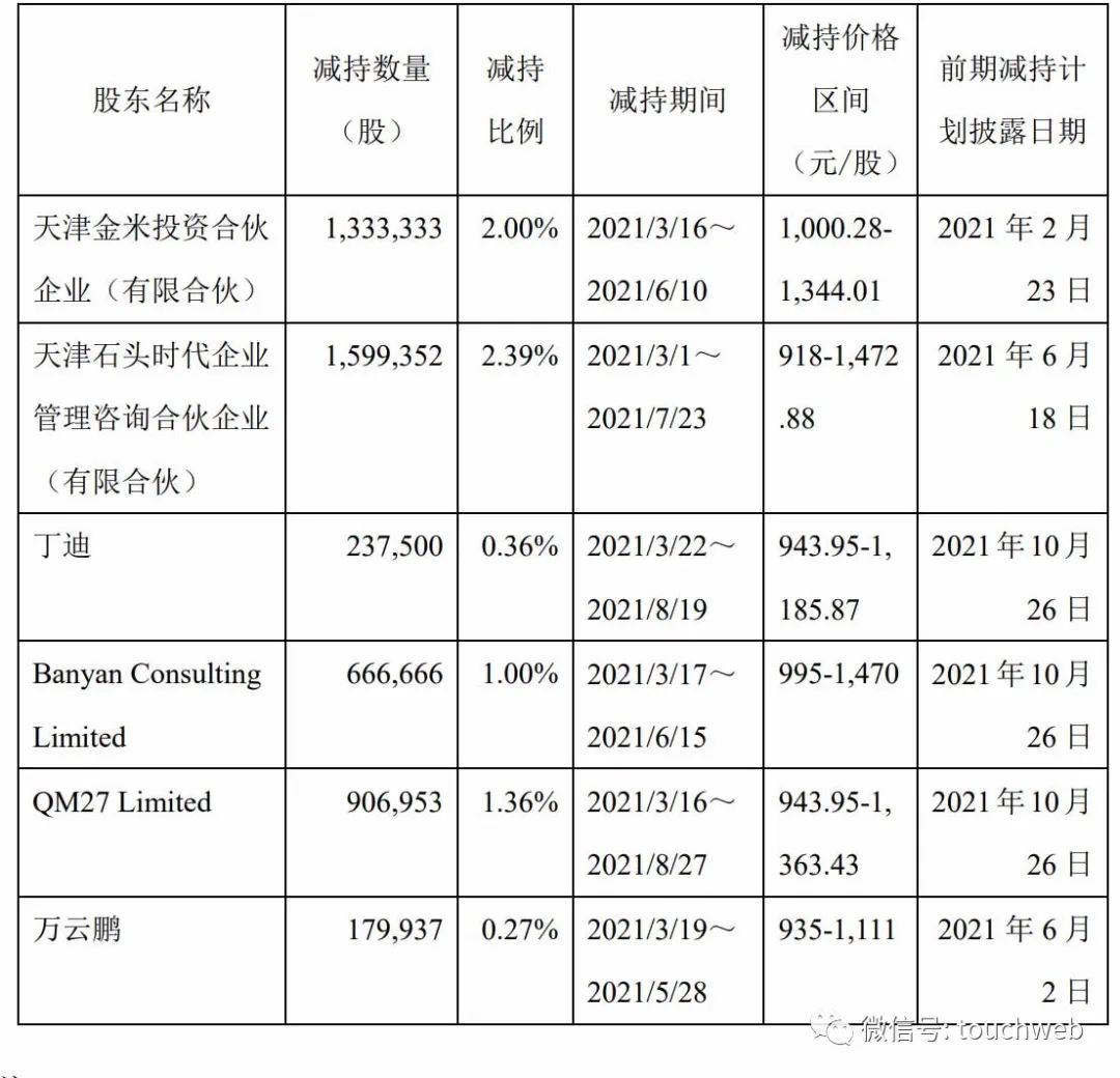 石头科技今日发布公告称,包括小米旗下天津金米投资合伙企业、高榕、启明、丁迪等众多股东减持。