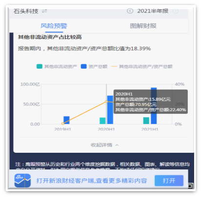 根据鹰眼预警发现,公司自上市后,其其他非流动资产突击大幅增长,2021年上半年余额为15.89亿元(含一年以内到期),而2021年上半年余额进一步攀升至16.72亿元。