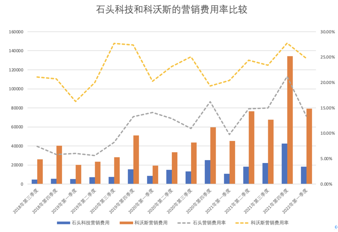 图|石头科技与科沃斯的营销费用率比较