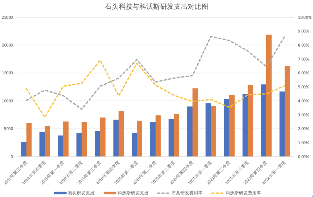 图|石头科技与科沃斯研发支出对比图