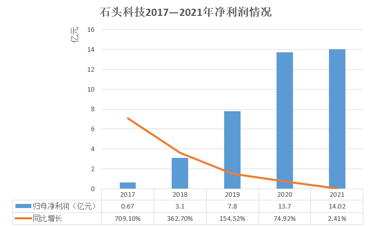 自此之后至2021年,无论是营业收入还是净利润,虽处在正增长态势,不过增速却远不及2017年。其中,仅有2018年,这两项业绩指标均呈现翻倍增长。