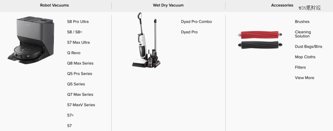 再看石头的产品,国内与海外贩售的产品线有明显区别。在海外,石头的产品定位中高端,目前的主力机型包括S8系列、S7系列、Q8系列、Q7系列、Q5系列等,主力产品的定价全部都在300美金以上(无折扣情况),旗舰S8 pro ultra的定价甚至高达1599.99美元。