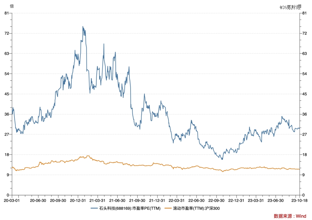 21年6月股价历史高点之前的暴涨行情,在反映了石头过去业绩高增这一事实的同时,彼时市场对于经济复苏也抱有较为乐观的预期。在顺周期或者市场整体预期乐观的时候,投资者通常都会给消费这类顺周期板块较高的估值,基于石头本身浓厚的消费属性,由此也解释了彼时石头股价与估值齐飞的现象。