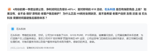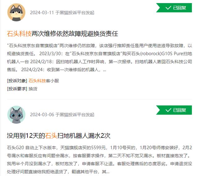 专注于新品SKU和销售,除导致石头科技售后没有跟上外。如股吧上有投资者称石头科技忽视了对老客户的售后维护服务。在黑猫投诉上也有消费者称,石头科技两次维修故障仍在,使用不到12天的石头扫地机器人漏水两次。