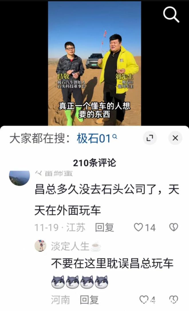 一直以来,石头科技创始人昌敬的一举一动备受投资者关注。近日,南都湾财社记者注意到,昌敬在社交媒体平台发布的多条视频下,都有网友在评论区下留言质疑近期石头科技的股价表现不佳,公司创始人“造车玩车却不顾主业”,“高位减持”等言论。