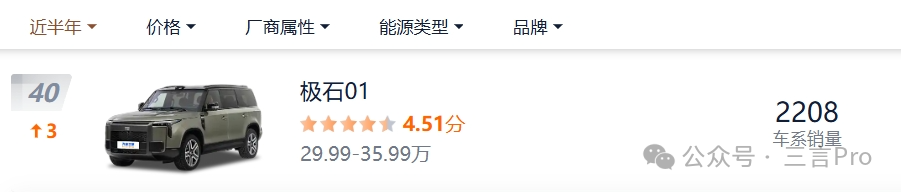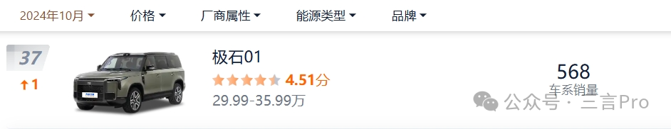 据汽车之家数据显示,今年10月,极石01的销量仅568辆。