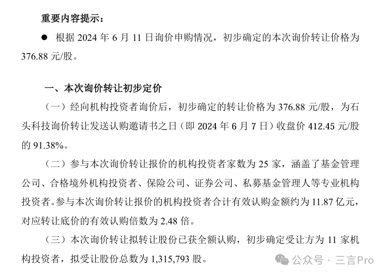 6月12日,石头科技公告,6月11日股东询价转让定价为376.88元。也就是说,昌敬此次套现近4.96亿。