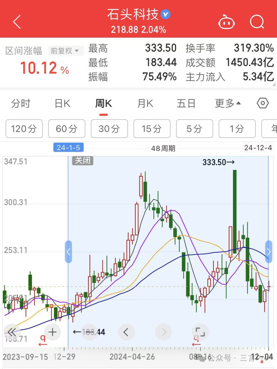 较石头科技的年内高位333.5元/股(除权后),其股价已下跌34%。