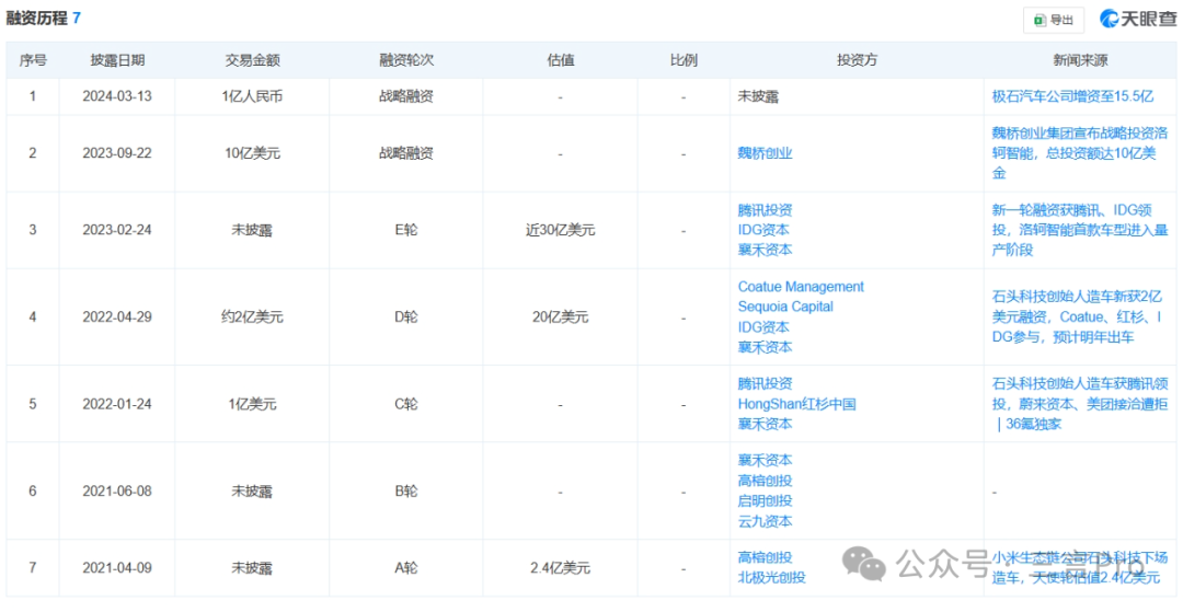 目前,极石汽车已成立三年多,公司已完成了E轮融资和两轮战略融资,共计7轮融资。投资方包括IDG资本、红杉中国、启明创投等众多知名投资机构。