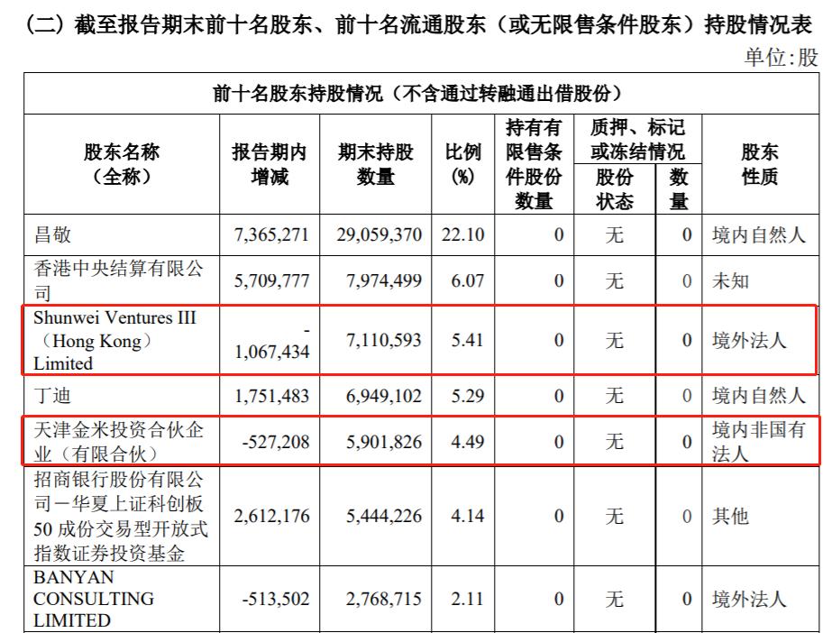 与2023年末相比,天津金米投资合伙企业(有限合伙)持股从4.49%降到了2024年底的2.93%;而顺为资本在2023年末还持股5.41%,如今更是直接退出十大股东行列。