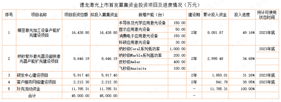 德龙激光IPO募资7.8亿元,其中,确定4.5亿元资金用途投向精密激光加工设备产能扩充建设项目、纳秒紫外激光器及超快激光器产能扩充建设项目以及研发中心建设等。