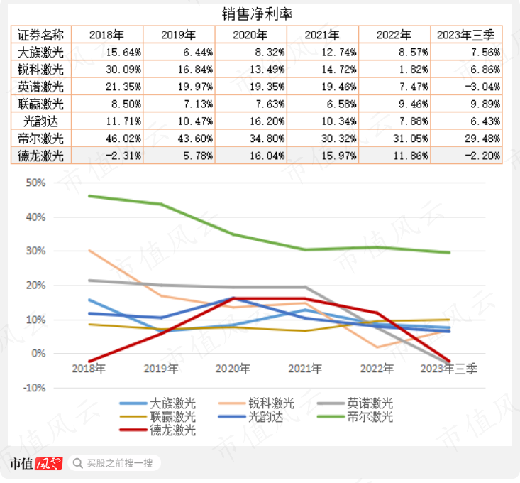 (市值风云APP制表)(三)激光设备毛利率保持在50%