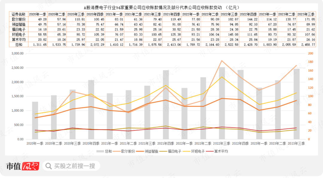 (市值风云APP制表)(三)消费电子行业存货下降,但应收款变动不大