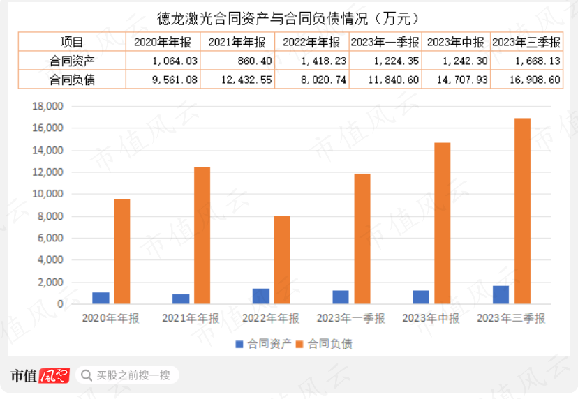此外,德龙激光的合同负债在今年前三季度末达1.7亿元,增长较快,较年初0.8亿元增加近一倍。