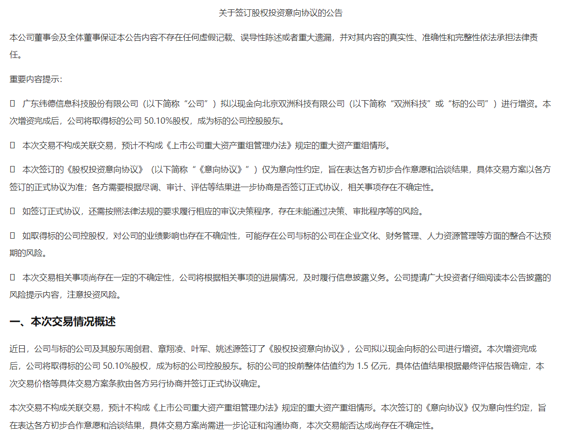 纬德信息在相关公告中指出,标的公司的主营业务为以信息安全保密软件产品、数字孪生驱动软件为主的软件产品开发、销售,主要客户包括党、政、军等部门以及与之相关的军工研究所、系统集成商等,在相关信息安全产品方面具有丰富的技术储备和研发经验,在相关业务领域也积累了比较稳定的客户群体。此次投资完成后,公司将取得标的公司控股权,标的公司将纳入公司合并报表范围,有助于公司进一步整合信息安全领域的研发、技术、市场等资源,拓宽产品线和市场渠道,提升市场份额,为公司的可持续发展注入新的活力。