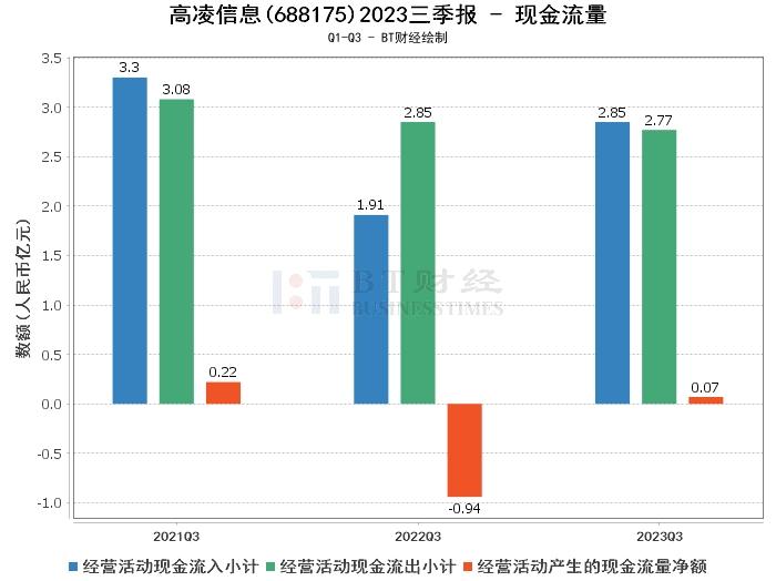 在现金流量方面,2023年三季度,高凌信息的经营活动产生的现金流量净额为736.35万元,相比上年同期的-9371.55万元有所改善,主要系本年收回到期应收账款,及收到较大额预收款所致。