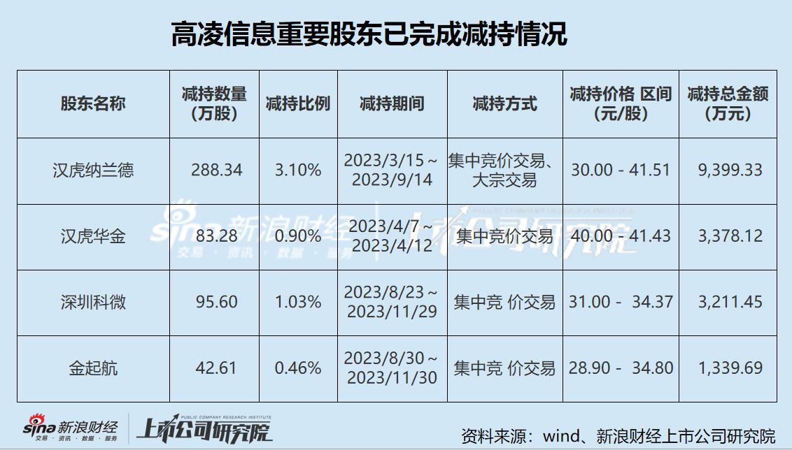 自2023年3月高凌信息一年期首发限售股解禁后,其原始股东便在持续套现。