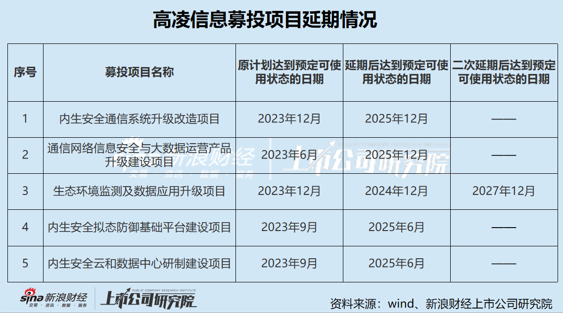 2023年7月,公司对上述募投项目达到预定可使用状态的时间进行延期,最长的延期了两年半。今年9月,公司对生态环境监测及数据应用升级项目的实施内容、投资规模进行调整,并再次延期至2027年12月。