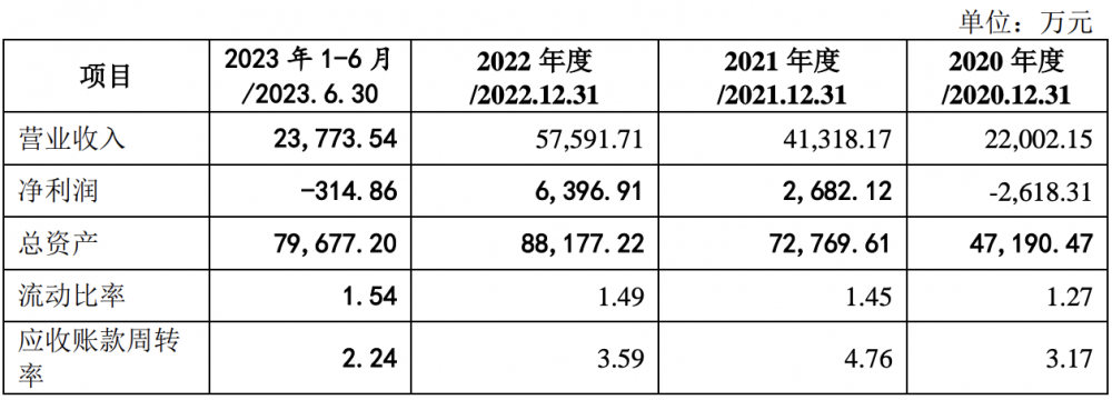 综合欣诺通信招股说明书和问询函信息,2020年至2022年及2023年上半年,欣诺通信分别实现营收2.20亿元、4.13亿元、5.76亿元和2.38亿元;净利润-2618.31万元、2682.12万元、6396.91万元和-314.86万元。