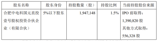 截至公告披露日,公司股东中电科国元直投壹号持有公司股份1,947,148股,占截至其减持计划披露日公司总股本(130,068,930股)的1.5%。上述股份为公司首次公开发行前取得的股份,以及由该等股份因资本公积转增股本取得的股份,首次公开发行前取得的股份已解除限售并上市流通。