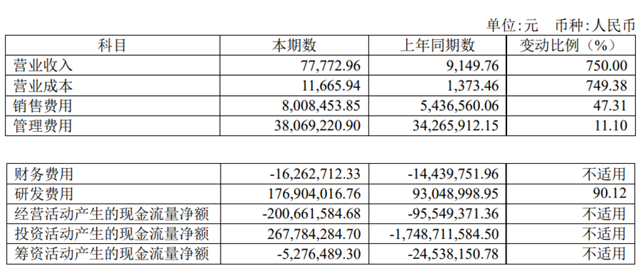 今年上半年,亚虹医药的销售费用为800.85万元,上年同期为543.66万元,同比增长47.31%;研发费用1.77亿元,上年同期为9304.90万元,同比增长90.12%。