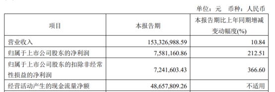 万德斯4月30日披露2024年一季度报告显示,报告期内,公司实现营业收入1.53亿元,同比增长10.84%;归属于上市公司股东的净利润758.12万元,同比增长212.51%;归属于上市公司股东的扣除非经常性损益后的净利润724.16万元,同比增长366.60%;经营活动产生的现金流量净额4865.78万元。