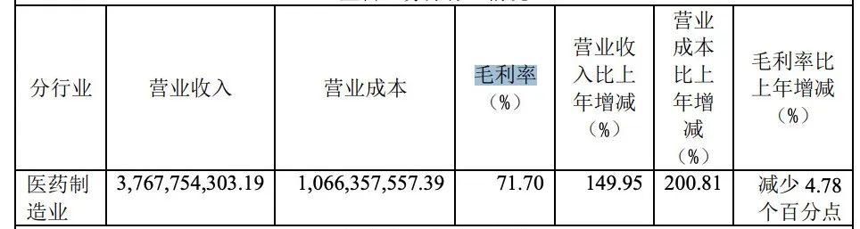 利润方面:君实38亿的医药制造收入中,27亿都是毛利,毛利率达71.7%,相比于2020年(76.5%)略微下降的原因是——人工、技术许可及特许权使用费用增加,导致营业成本比上年增长201%。