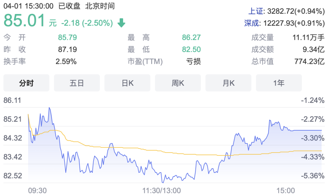 重磅产品PD-1的业绩“摆烂”,投资者显然无法接受,导致今日君实A股、港股两地盘面集体下滑——A股盘中最高跌幅超5%,市值达774亿元;港股盘中最高跌幅近6%,市值缩水至500亿港元。