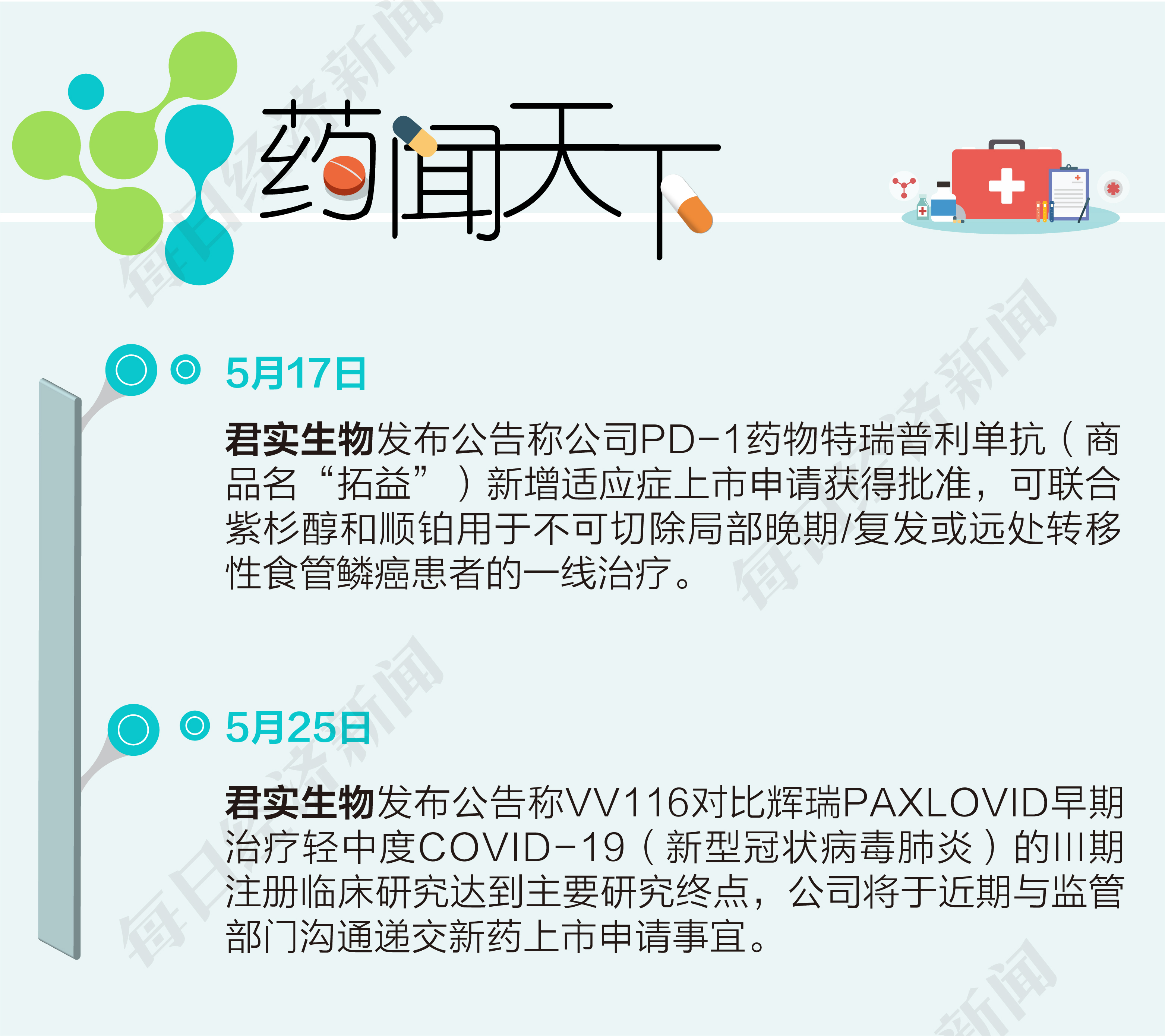 1、君实生物VV116头对头辉瑞Paxlovid成功,PD-1抗体药物新增食管鳞癌适应症