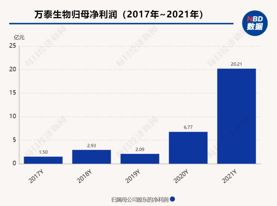 年报显示,万泰生物2021年营收为57.50亿元,同比增长144.25%;实现净利润20.21亿元,同比增长198.59%。其中,疫苗产品实现营收32.78亿元,同比增长360.75%,毛利率超92%。