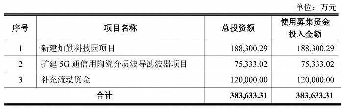 在此情况下,灿勤科技募投项目仍要扩大产能。根据公司招股书,新建灿勤科技园项目中将新增介质波导滤波器产能1.5亿只/年,扩建5G通信用陶瓷介质波导滤波器将新增产能1亿只/年,合计高达2.5亿只。